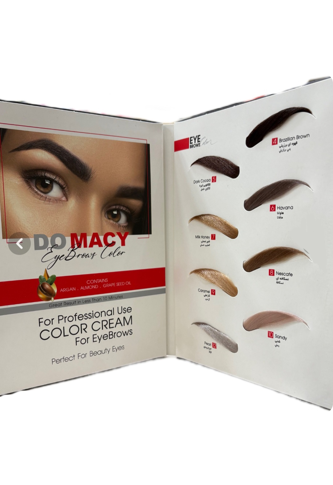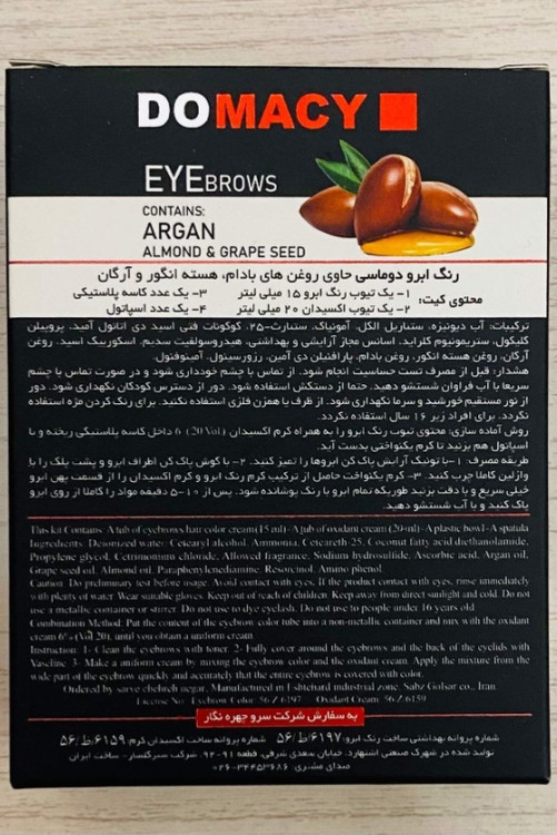 کیت رنگ ابروی حرفه ای دوماسی با بهره گیری از مواد اولیه خارجی و فرمولاسیون اروپایی و رنگ های بسیار جذاب خود تمام سلیقه ها را پوشش می دهد. این رنگ ابروی بسیار باکیفیت حاوی روغن بادام، روغن هسته انگور و روغن آرگان بوده و سلامتی و زیبایی ابروهای شما را تضمین می کند.