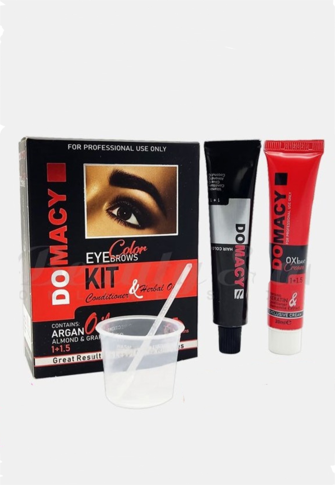 کیت رنگ ابروی حرفه ای دوماسی با بهره گیری از مواد اولیه خارجی و فرمولاسیون اروپایی و رنگ های بسیار جذاب خود تمام سلیقه ها را پوشش می دهد. این رنگ ابروی بسیار باکیفیت حاوی روغن بادام، روغن هسته انگور و روغن آرگان بوده و سلامتی و زیبایی ابروهای شما را تضمین می کند.
