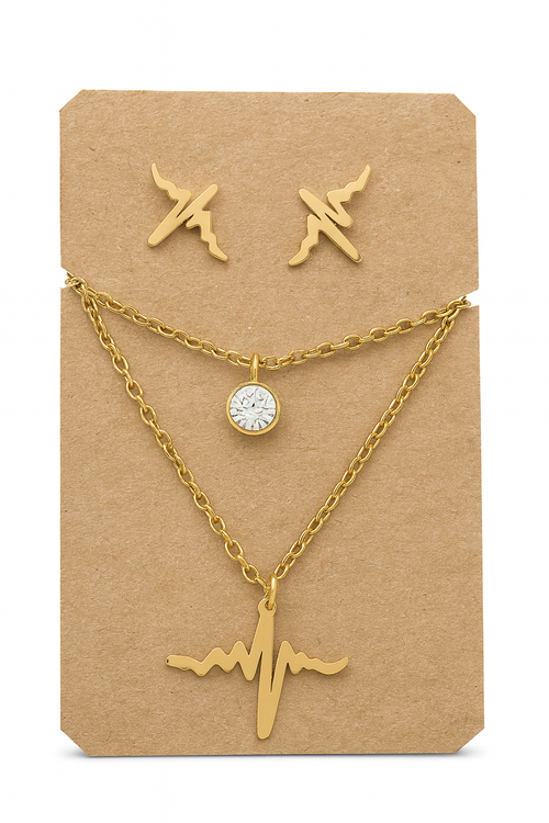 ترکیب زنجیر دولایت با گوشواره میخی طرح ضربان قلب یک انتخاب حرفهای مناسب با هر استایلی هست